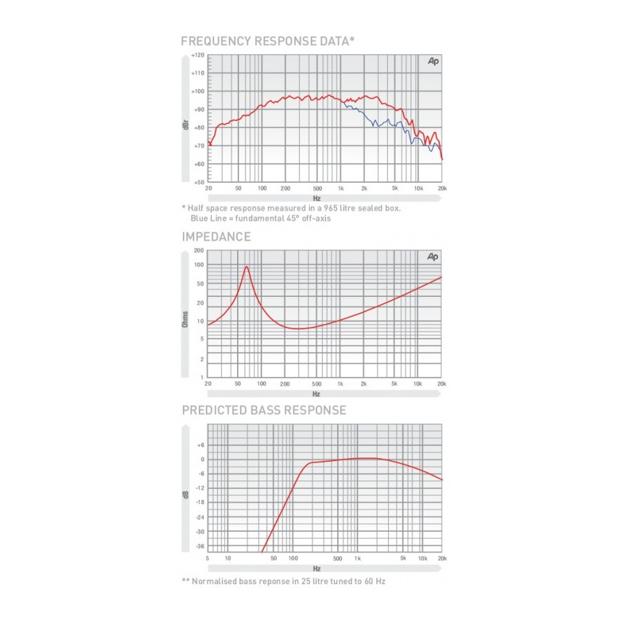 The Sovereign Po 8-225 is a very versatile unit offering excellent coverage for use in traditional compact 2 way ported enclosures. The driver can also be used as a midrange unit in small sealed enclosures as part of a larger multi way system. When used in small format line array it offers excellent vocal coverage and coherence.