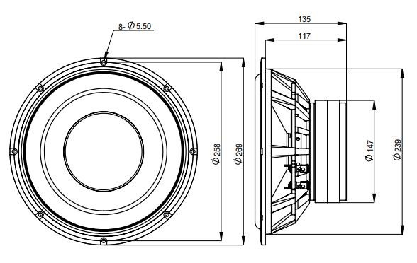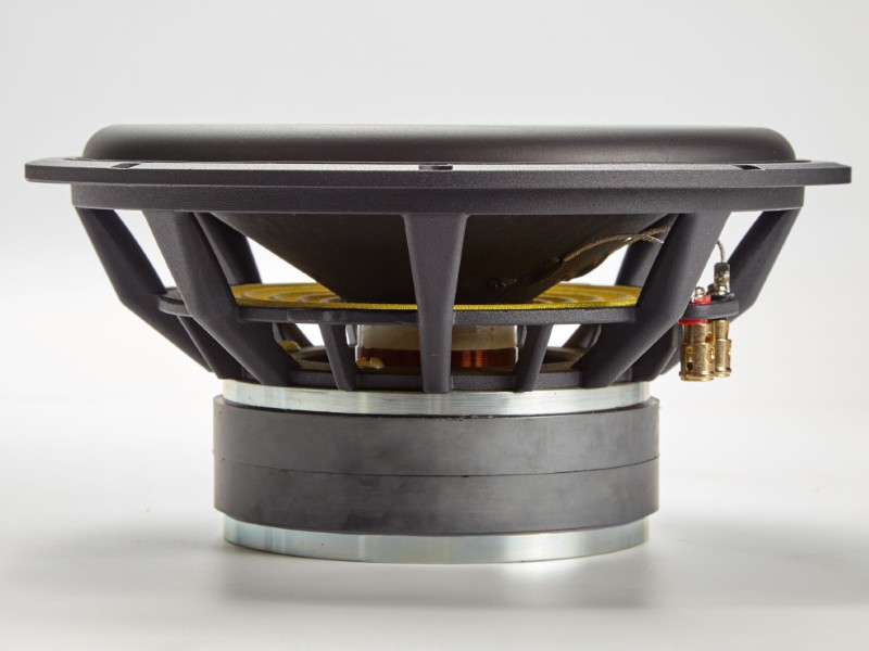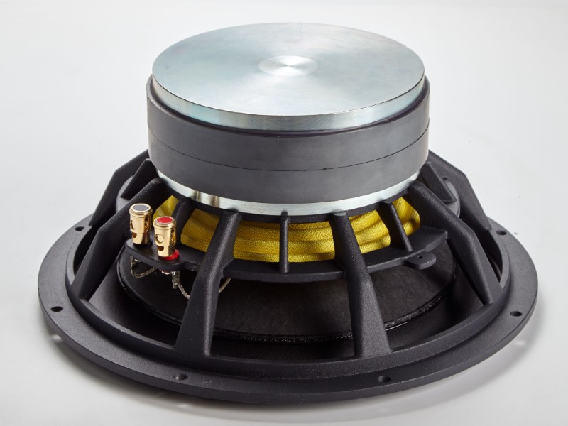 The 101FHW is a high efficiency, (86dB 1watt / 1 meter) 10-inch woofer speaker with extended low frequency response and high power handling capability. The 101FHW uses a strong glass fiber reinforced paper cone assembly along with a single roll rubber surround. Spider is Nomex material with stitched-in tinsel wires. This ensures long lasting performance even in high powered applications. The chosen material combination provides remarkable strength, high efficiency and sustained output under extreme conditions. The 101FHW cone and dust cap are made using glass fiber loaded paper pulp. All “soft” parts are bonded together using state of the art high temperature adhesives. Metal parts in the speaker assembly are coated for extreme weatherization protection. Speaker push terminals are gold plated to ensure the best connection.