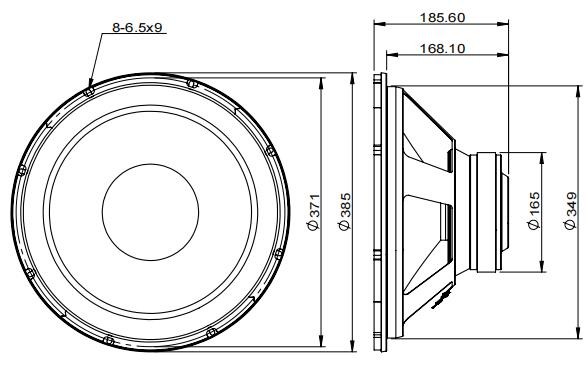 - Peak to peak linear cone displacement: 14,85 mm