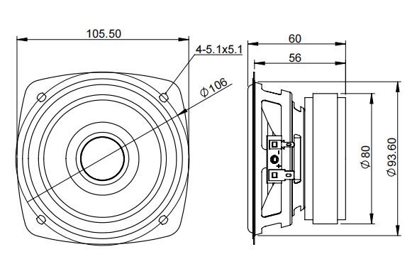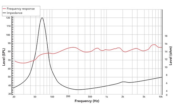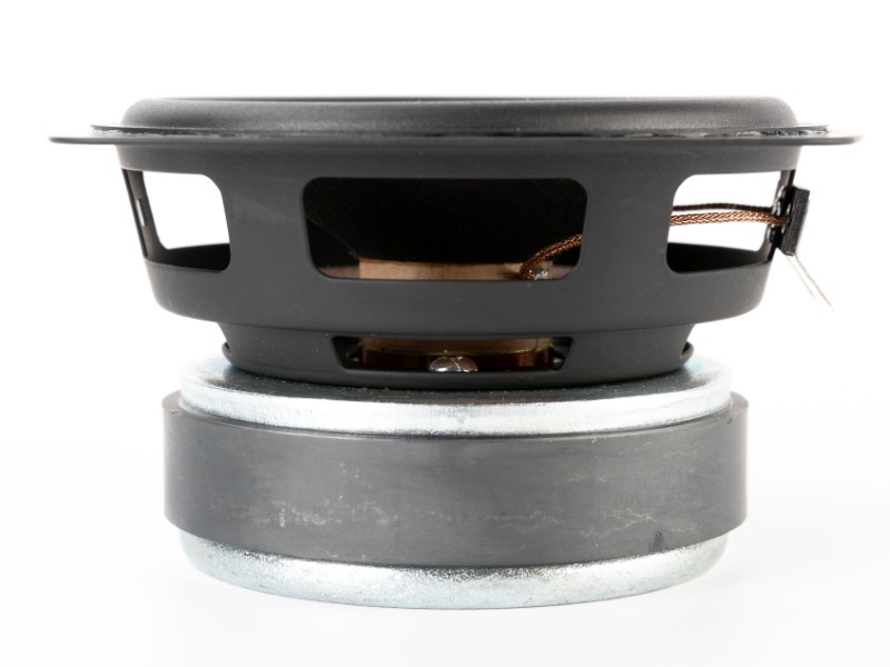 4FR ferrite based mid-woofer was developed for applications where small size mid-woofer is required. Low resonant frequency and large cone excursion delivers seizable amounts of low frequencies. Yet, this driver delivers very good performance in mid-high frequency range. Our engineers have chosen lightweight, yet strong, paper cone with rubber surround. Cone optimized shape brings remarkable strength of the piston and greatly improves harmonic distortion artifacts. Overall this model delivers very good performance and is well balanced between performance - cost.