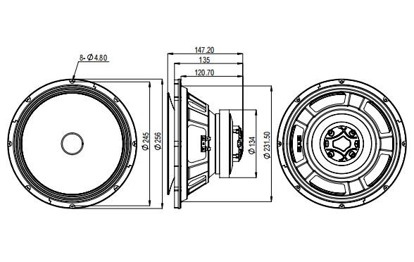 The CX10F-140F is a high efficiency, (95dB 1watt / 1 meter) 8-inch coaxial speaker with very linear frequency response characteristics and high power handling capability. The mid-woofer utilizes REDCATT developed paper pulp cone that has proven its performance in many ours successful designs. The HF section was designed around our most successful dome assembly as used in 140FCD and has integrated symmetrical aluminum horn. The combination of used materials with our state of the art quality production yields in well performing driver even in the most demanding and extreme weather conditions. Magnetic circuit design REDCATT engineers have developed ferrite-neodymium based magnetic circuit, capable of delivering the highest level of performance in a small form factor. The combination of ferrite and neodymium delivers an excellent magnetic performance. The magnetic circuit design is optimized to generate the minimum amount of flux modulation, providing exceptional stability. Aluminum demodulation ring is assembled in the HF section.